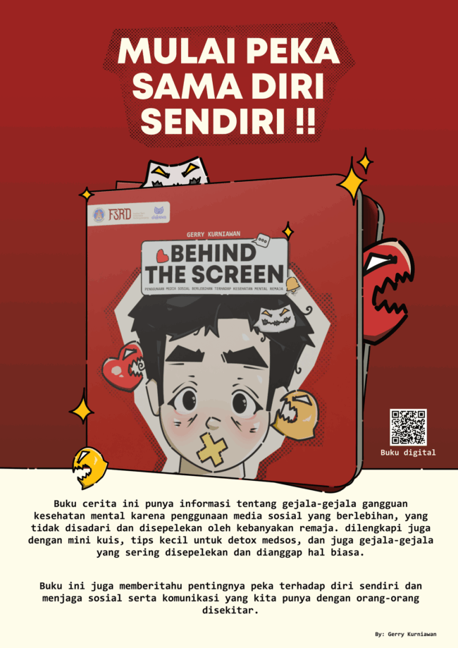 Perancangan Kampanye Sosial “your Emotions Matter” Sebagai Upaya Pencegahan Mental Illness Pada Remaja Nama: Nisa Fadillah Jarfa NIM: 09208021 Tahun: 2025 Remaja paling rentan untuk terserang gangguan kesehatan mental. Remaja dinilai sebagai suatu fase dengan gejolak emosi yang tinggi dan pertahananan diri yang masih rendah. Sehingga fase ini perlu diberikan pengetahuan dan pengarahan lebih mengenai…