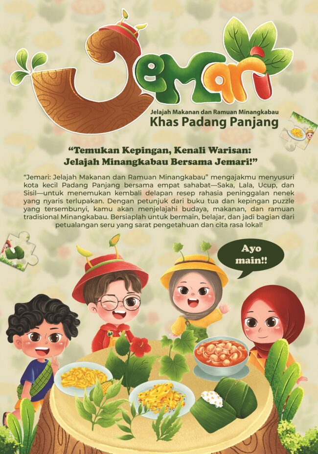 Perancangan Board Game Ragam Pengetahuan Tradisional Minangkabau Di Kota Padangpanjang Nama: Salsabila NIM: 09208421 Tahun: 2025 Penelitian ini bertujuan untuk merancang media pembelajaran berbentuk board game berjudul JEMARI: Jelajah Makanan dan Ramuan Minangkabau sebagai sarana pengenalan pengetahuan tradisional khas Padangpanjang kepada anak usia 10-11 tahun. Perancangan dilakukan melalui tahapan studi literatur, observasi, wawancara, analisis kebutuhan,…