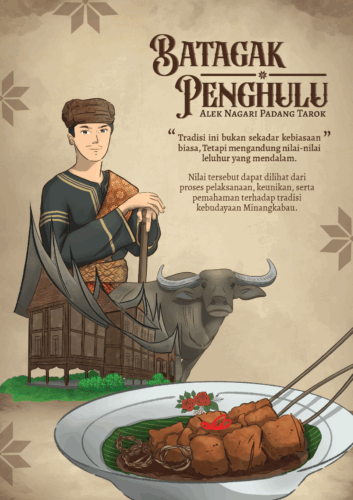 Berdasarkan hasil pengumpulan data, ditemukan bahwa sebagian besar masyarakat di Nagari Padang Tarok tidak banyak memahami akan tradisi batagak penghulu ini dari tentang proses dari awal permasalahan terjadi Tradisi Batagak Penghulu Nagari Padang Tarok, Kec. Baso, Kab. Agam, Sumatera Barat, hingga bisa terlaksanakan, maupun seputar tradisi tersebut. Media yang dirancang dalam penelitian ini ialah Buku ilustrasi yang membahas Tradisi Batagak Penghulu yang ada di Nagari Padang Tarok.